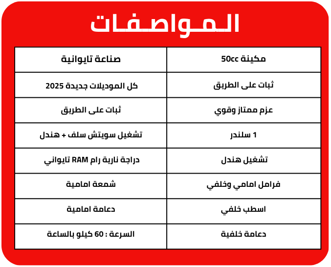 - 4 عجلات مقاس 50cc